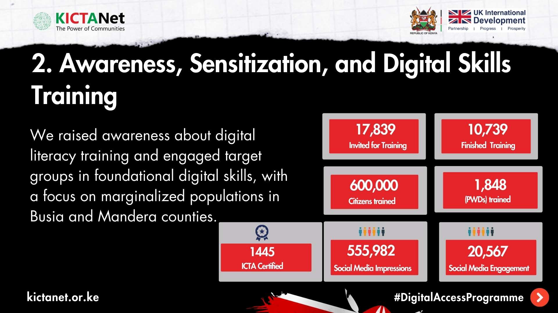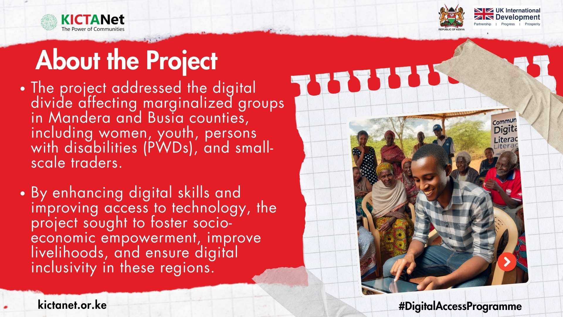 The project addressed the digital divide affecting marginalized groups in Mandera and Busia counties, including women, youth, persons with disabilities (PWDs), and small-scale traders.